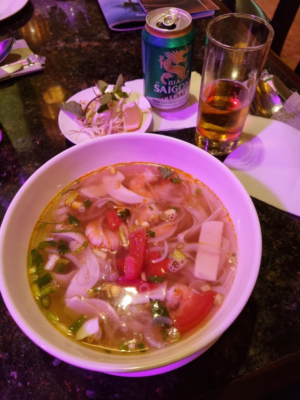 Очень понравилось место и еда. Большой, наваристый вкусный суп Фо, потрясающая утка! Все что заказывали вместе с коллегами зашло прямо на отлично, а нашему любителю остроты удалось довести остроту своего блюда аж до слез )